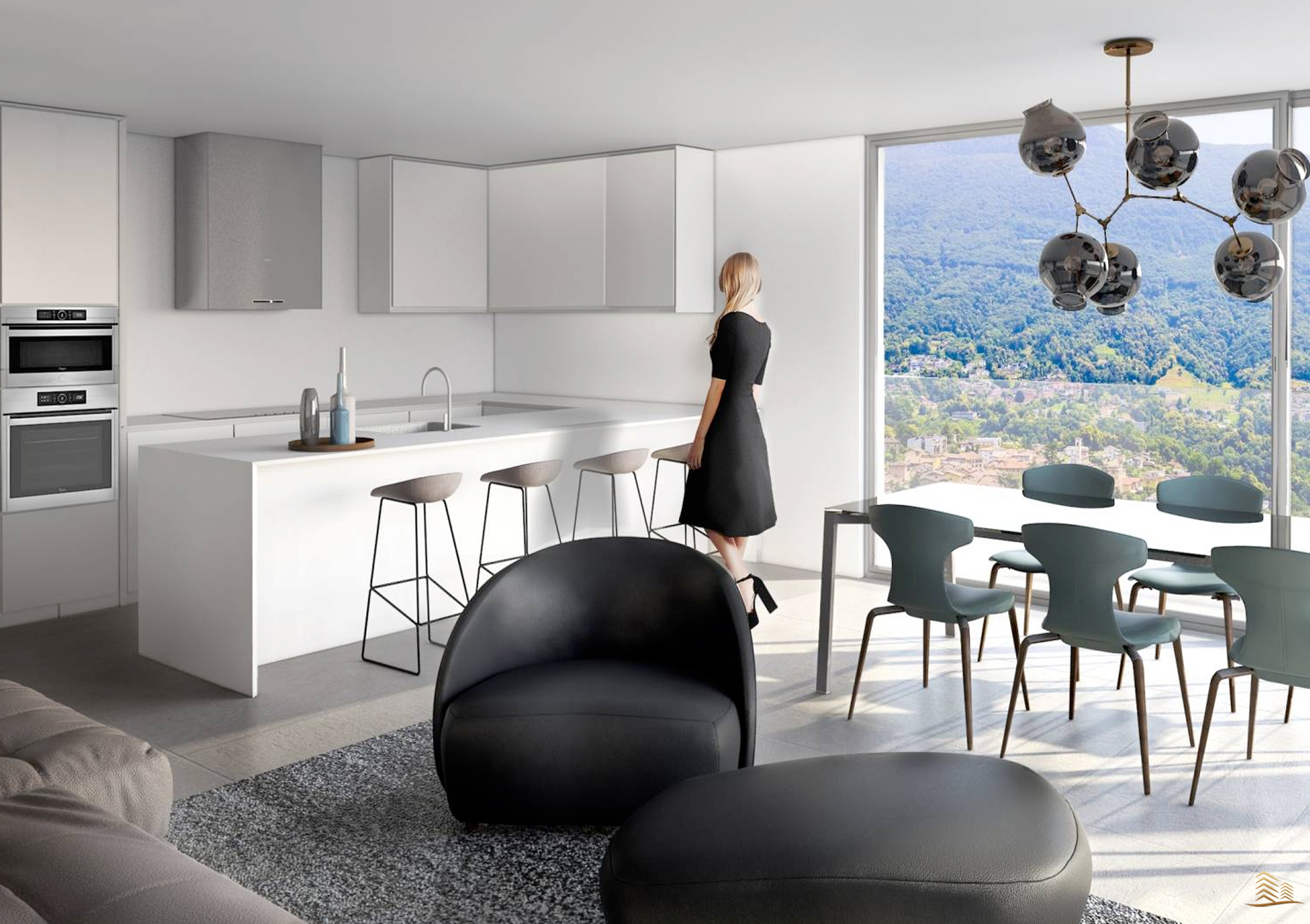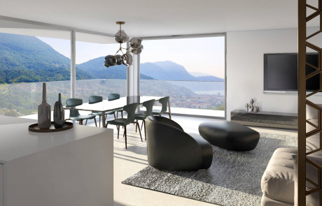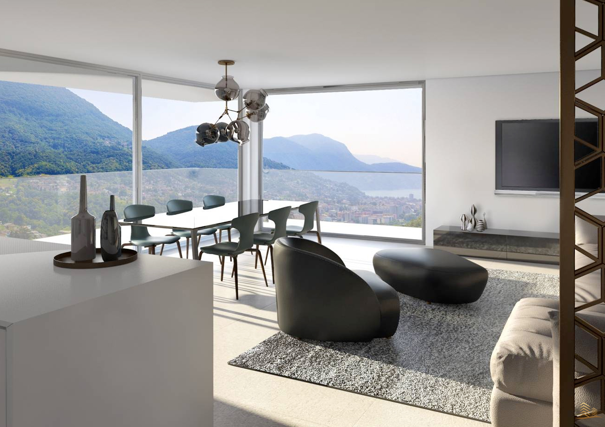 Generosi spazi aperti e luminosi, suite matrimoniale con bagno, guardaroba e studio. Una grande terrazza esterna ed uno spazio verde privato caratterizzano questo appartamento. La panoramica vista a 180° spazia sulla Val Colla, mentre il lago di Lugano si apre sia dalla zona giorno che dall’ampia e vivibile terrazza di 60 m2.
