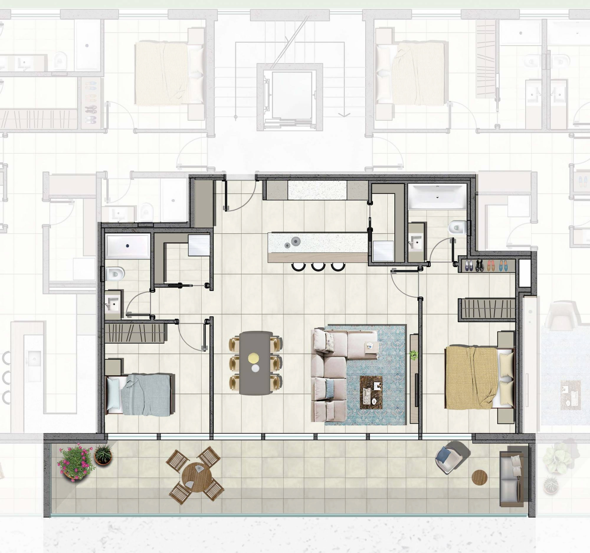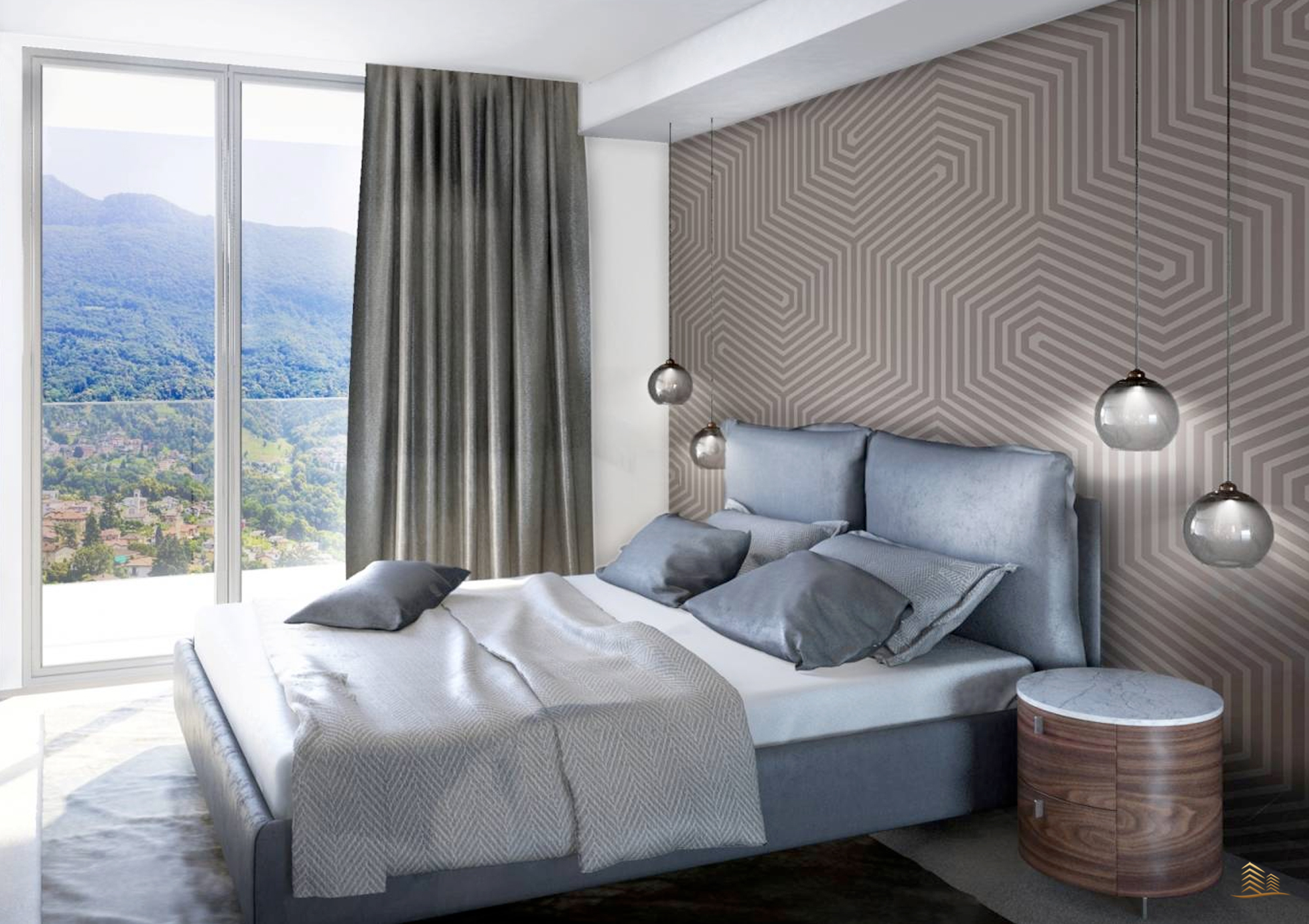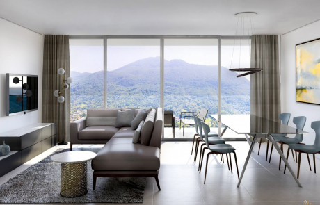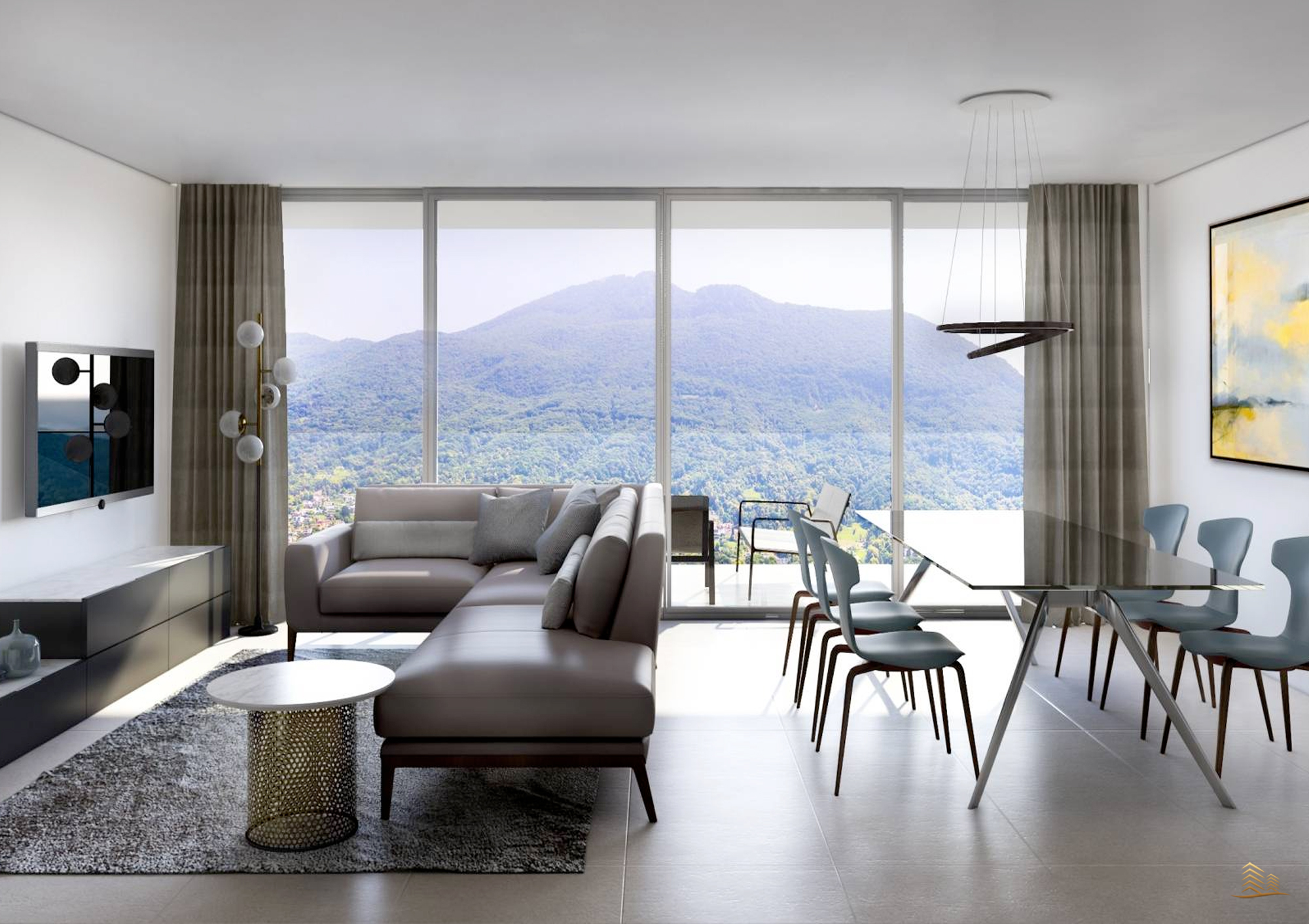 Moderno 3 ½ al primo piano con un generoso spazio giorno di 47 m2. La vetrata scorrevole di 6.5 ml incornicia la invidiabile vista a 180° sul Monte Brè, Monte Boglia e i Denti della Vecchia – “… É come avere un soggiorno/pranzo all’esterno… – La stessa vista si apre da entrambe le camere da letto e dalla spaziosa terrazza di 33 m2. All’ampia e moderna cucina aperta è annesso ripostiglio. Doppi servizi e una lavanderia/deposito completano questo straordinario appartamento.
